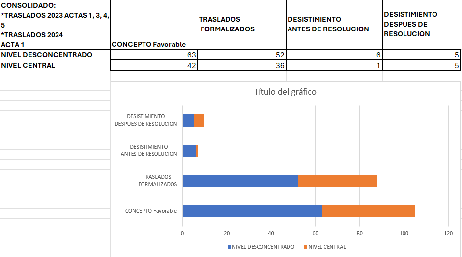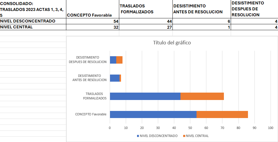 Como representante de la comisión de personal en la vigencia 2023-2024 he defendido el derecho fundamental que tienen los funcionarios, para reubicarse laboralmente y reencontrarse con su esposa o sus hijos o sus seres queridos o la satisfacción del trabajador por volver a su tierra natal, por ello se otorgaron oportunamente los traslados que a continuación relaciono: